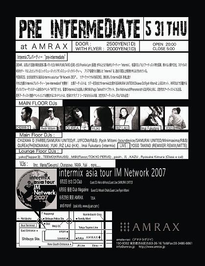 アジア各都市を結ぶintermixと連動し、6月2日台北を皮切りに始まるintermix asia tour”IM Network2007”のツアーファイナルとして6月29日満を持してintermix日本本格上陸!