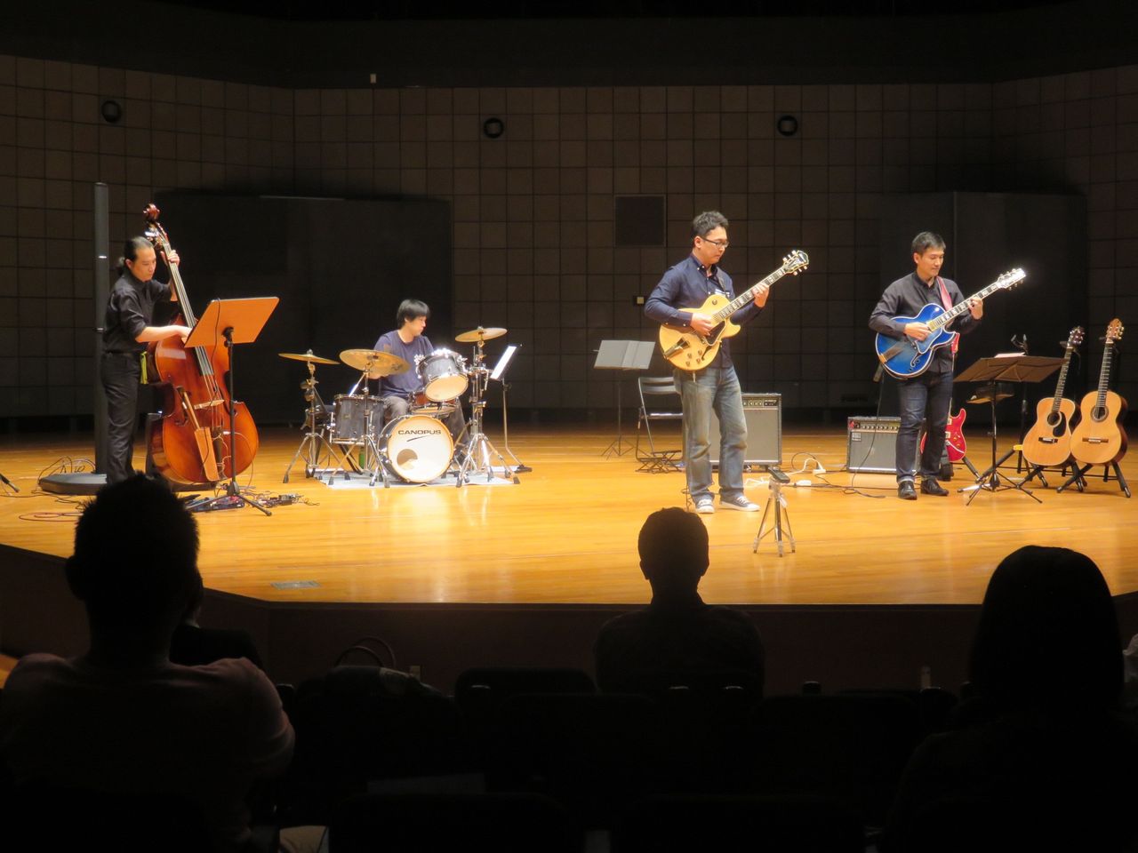 毎回講師演奏をさせて頂いてますが、今回は何を演奏しようか最後まで悩みました。思い切ってオリジナル曲を弾きました。前もって軽くリハーサルをしましたが、当日はリハーサルしなかったのでどうなるか予測不能でしたが、あまり固めなかったのが功を奏して緊張感のあるジャズらしい演奏ができたかと思います。