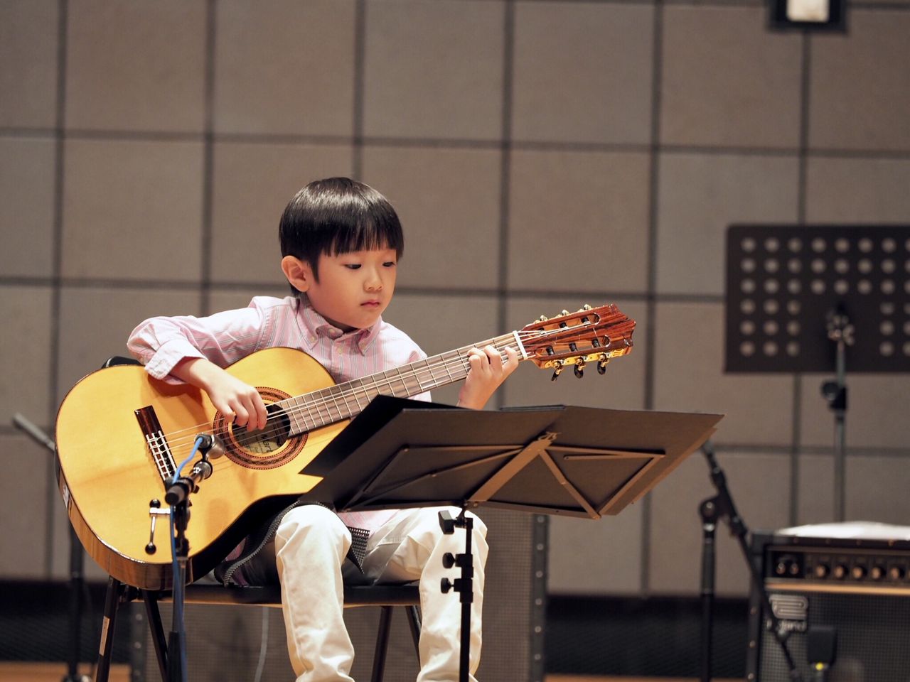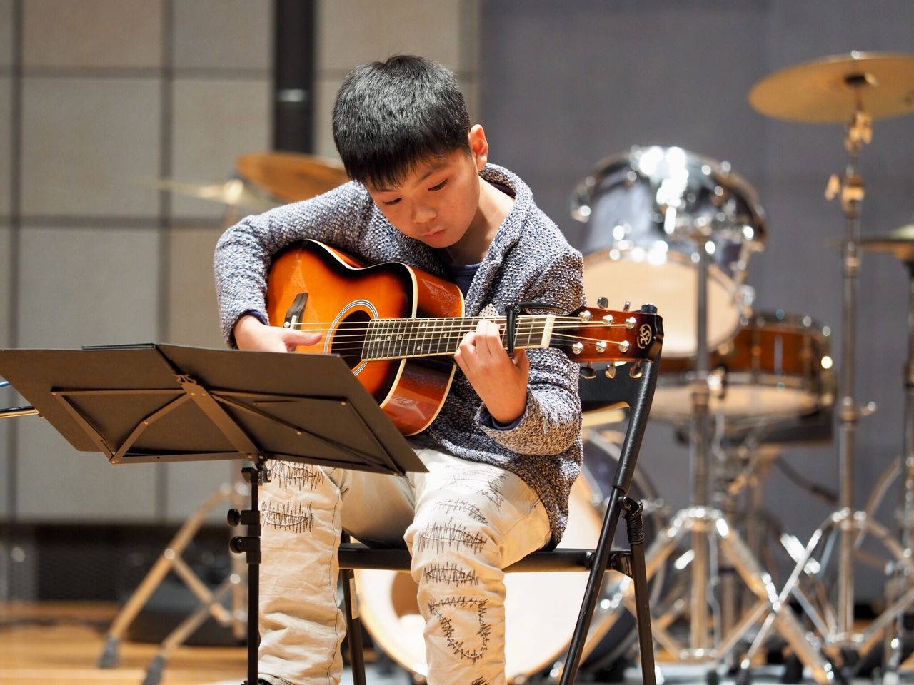 それでは第一部の開始です。第一部はアコースティックです。今年も1番は最年少のYくん。活き活きとした元気な音色が印象的でした。今回は伴奏にも挑戦。当初はアルペジオに苦戦しましたが、この数ヶ月でとても軽やかな演奏ができるようになりました。