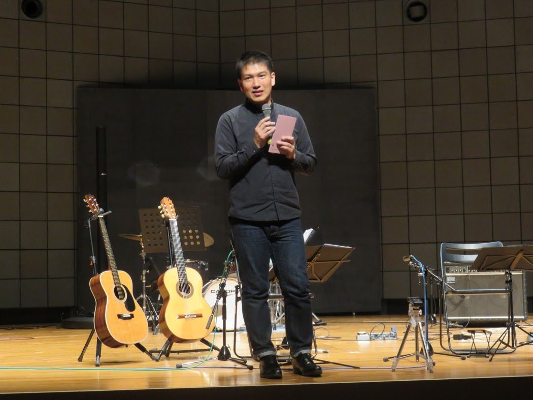 リハーサルは開場ギリギリまで行われギリギリセーフで開演。毎度のことながら、準備にリハにその他諸々雑務に追われ、開演するころにはこの表情。疲労感が漂ってます(苦笑)。頭が回らなくて何を喋ったか全く覚えていません。次回からある程度台本作ろうか?もしくは司会をどなたかにお願いしよう…。