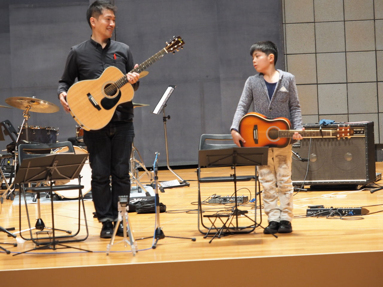 次はYくん。彼はK君と同級生でお友達。Kくん同様、シティーマラソン完走後すぐにホールに駆けつけてくれました。コードはうまく弾けるようになったものの、構成を間違いがちで不安を抱えたまま本番を迎えました。しかしながら本番でバッチリ決めてくれました。終始リズムが安定していたので、メロディー担当の私は気持ちよく演奏できました。