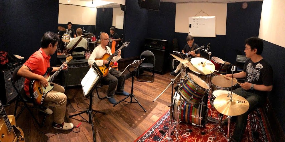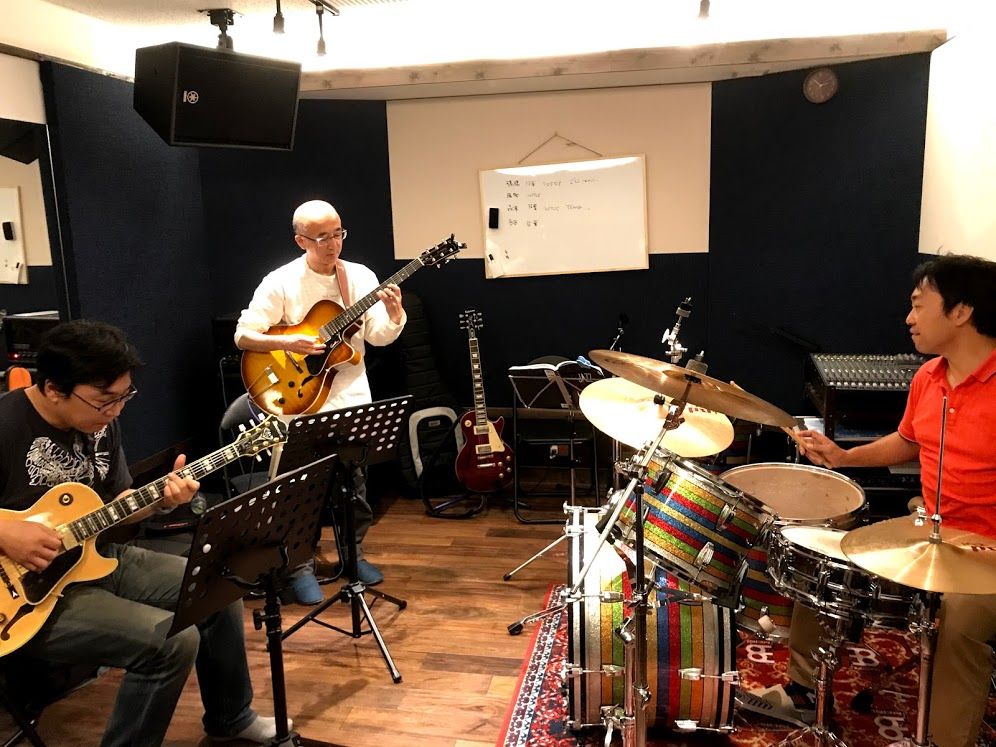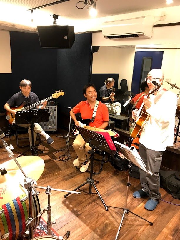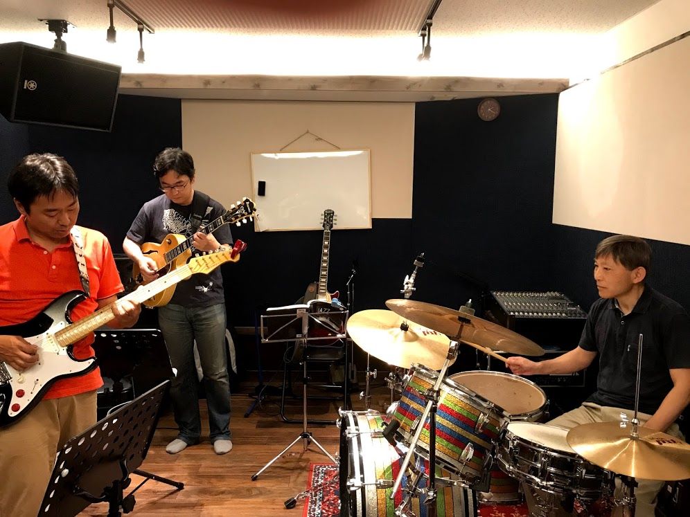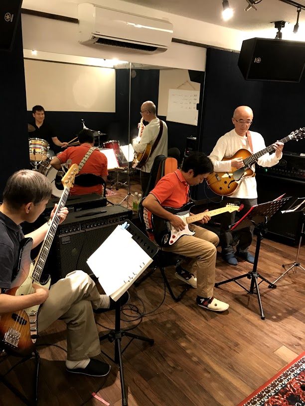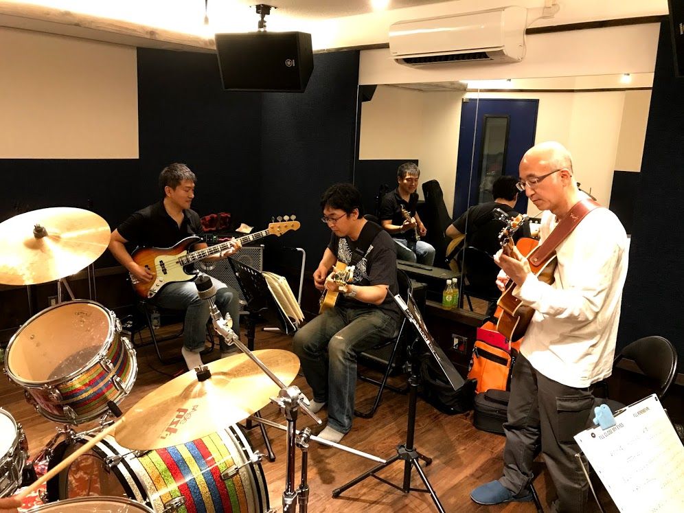 ジャズセッション終了しました。全員ギタリストですが、今回も皆様にはドラムとベースにもチャレンジしていただきました。
