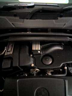 仕事場にあるBMW320i(E90)のエンジンルームを見て思いました。フロントミッドシップエンジンやなぁ…と。