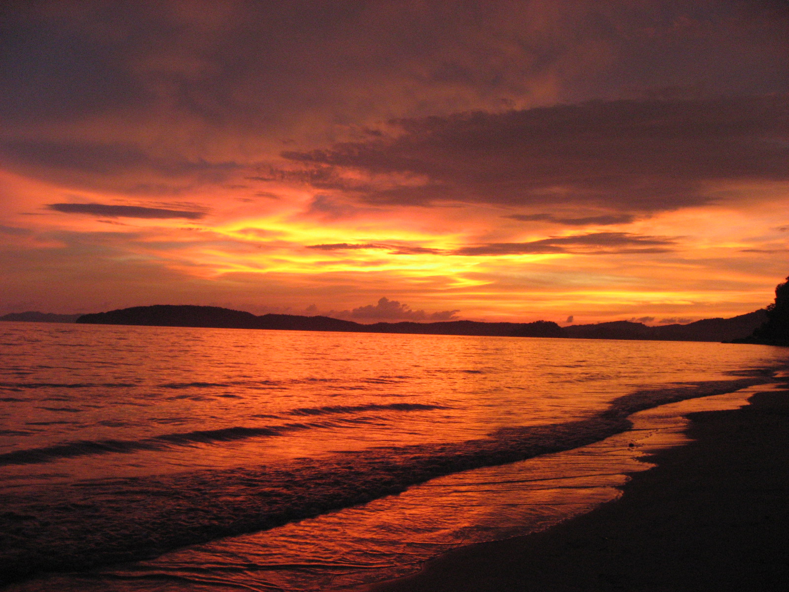 そしてタイ・クラビーのビーチで見た世界が真っ赤になった夕陽。