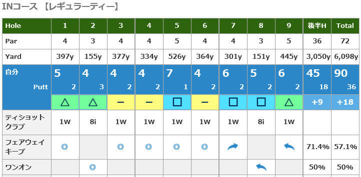 ほろ酔いで気持ちよ~く回ってきたバックナイン。スコアは???