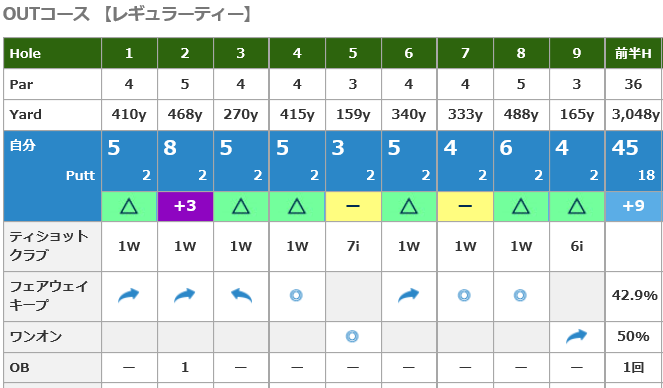 惜しくもボギーに出来ないダボとか多すぎ
