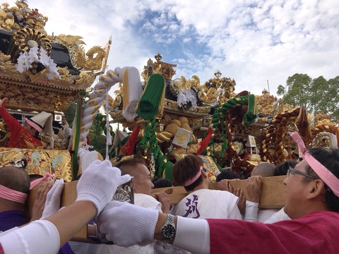 宮出前の7台練りでは全町揃っての万歳三唱で新天皇陛下の御即位をお祝いしました。