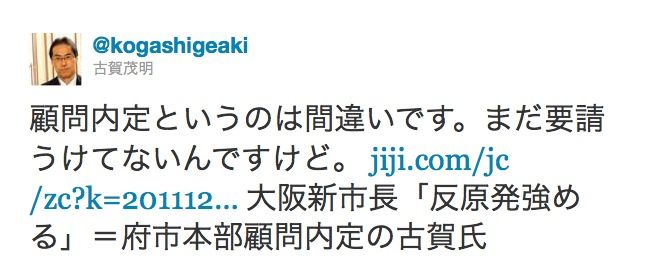 2011年12月19日、古賀茂明氏に関する報道がありました。