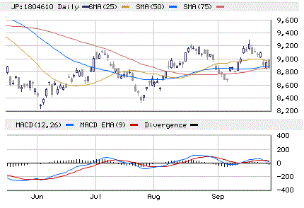 先週末のCME225にサヤ寄せしたマチマチのスタート後、米経済指標を受けたNYダウ・為替しだいでは9,000円台回復も視野に入るものの、週末の米雇用統計や3連休を踏まえれば 積極的に買いが入る環境ではないだけに弱気優位の趨勢がメインシナリオとして想定されます。