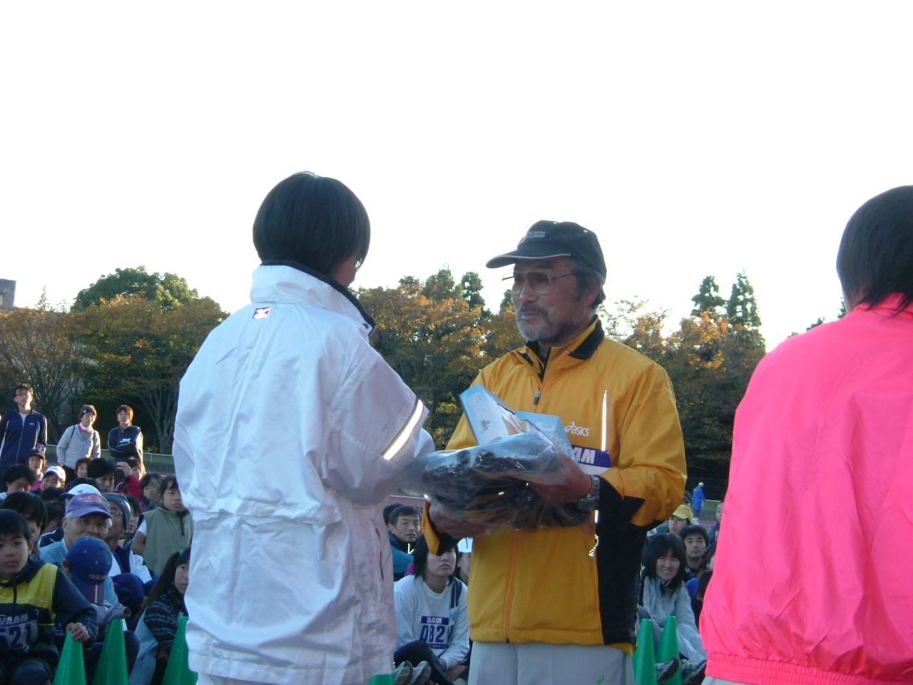 表彰式を終えて、選手全員を労う小出監督。