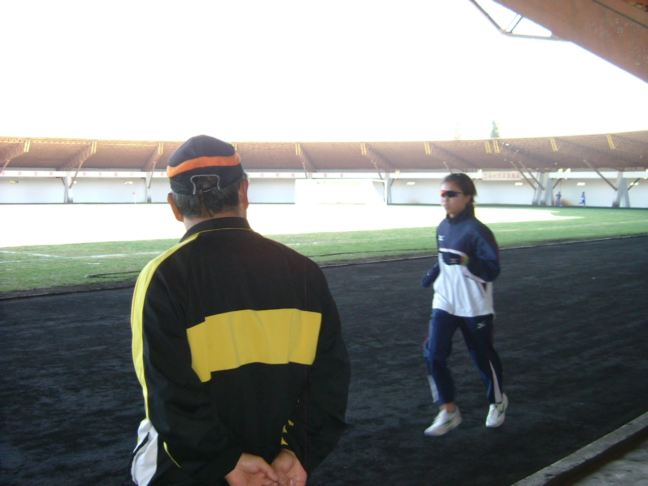 宮井の走りを真剣に見守る小出監督。