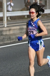 エース区間の3区を懸命に走る岩本靖代。