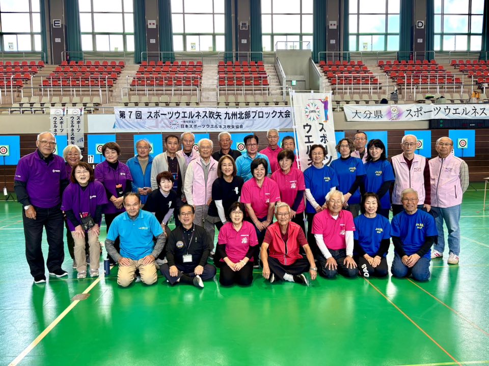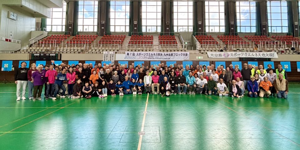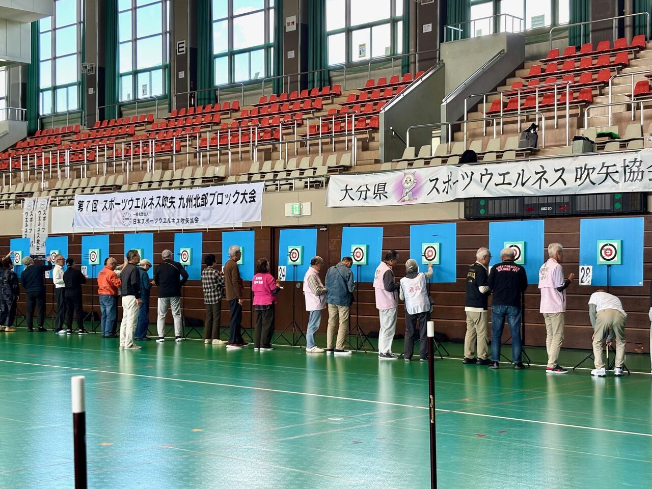 11月3日(祝月)大分市総合体育館にて「第7回スポーツウエルネス吹矢九州北部ブロック大会」が福岡、佐賀、長崎、大分県から約130名の参加者で開催されました。