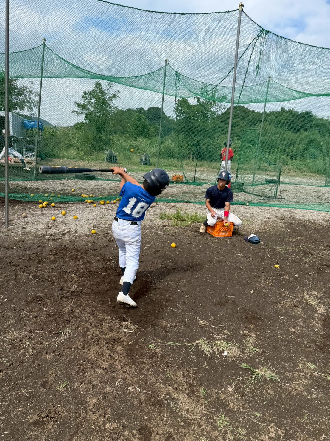 慣れない硬式球での感覚を楽しんで半日体験してくれました