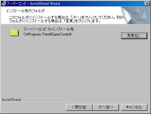初期インストール先(C:\Program Files\SuperCombination)を変更する場合は、[変更]をクリックして、インストール先を指定します。