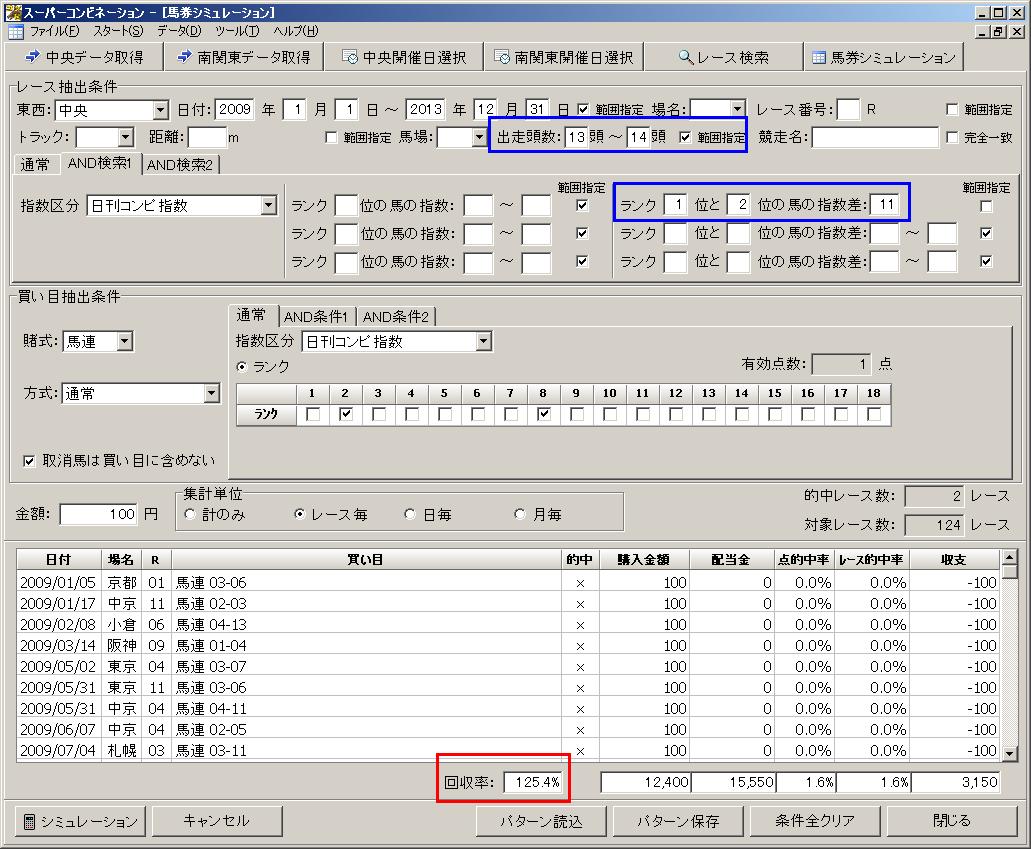 13〜14頭立てのレースで日刊コンピ指数の1位馬と2位馬の指数差が「11」 時に馬連の儲かるパターンは以下の通りです。