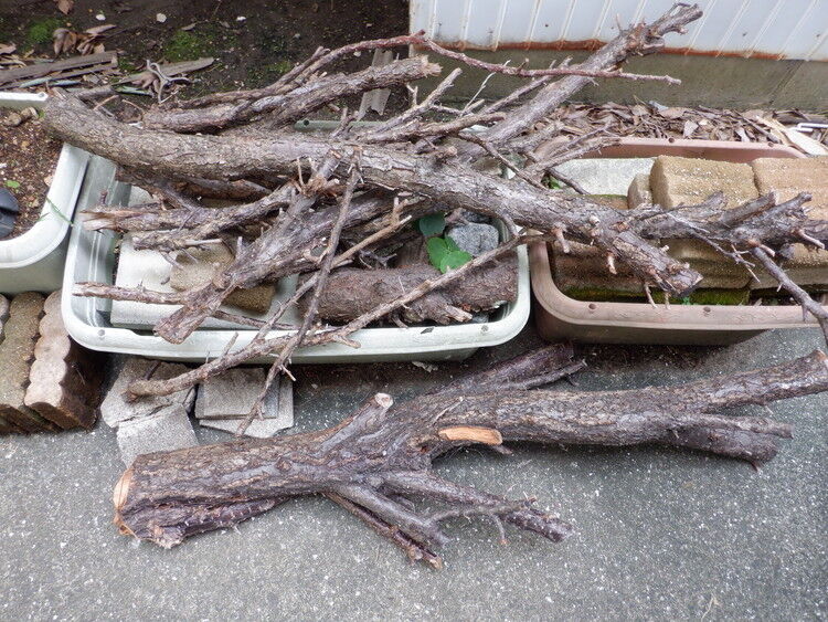 花梅の木を切り倒しました、その枝・幹類のストックです