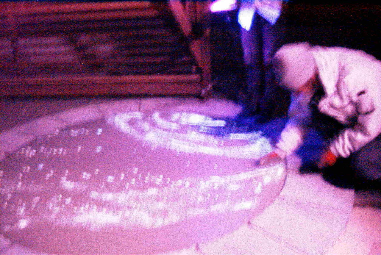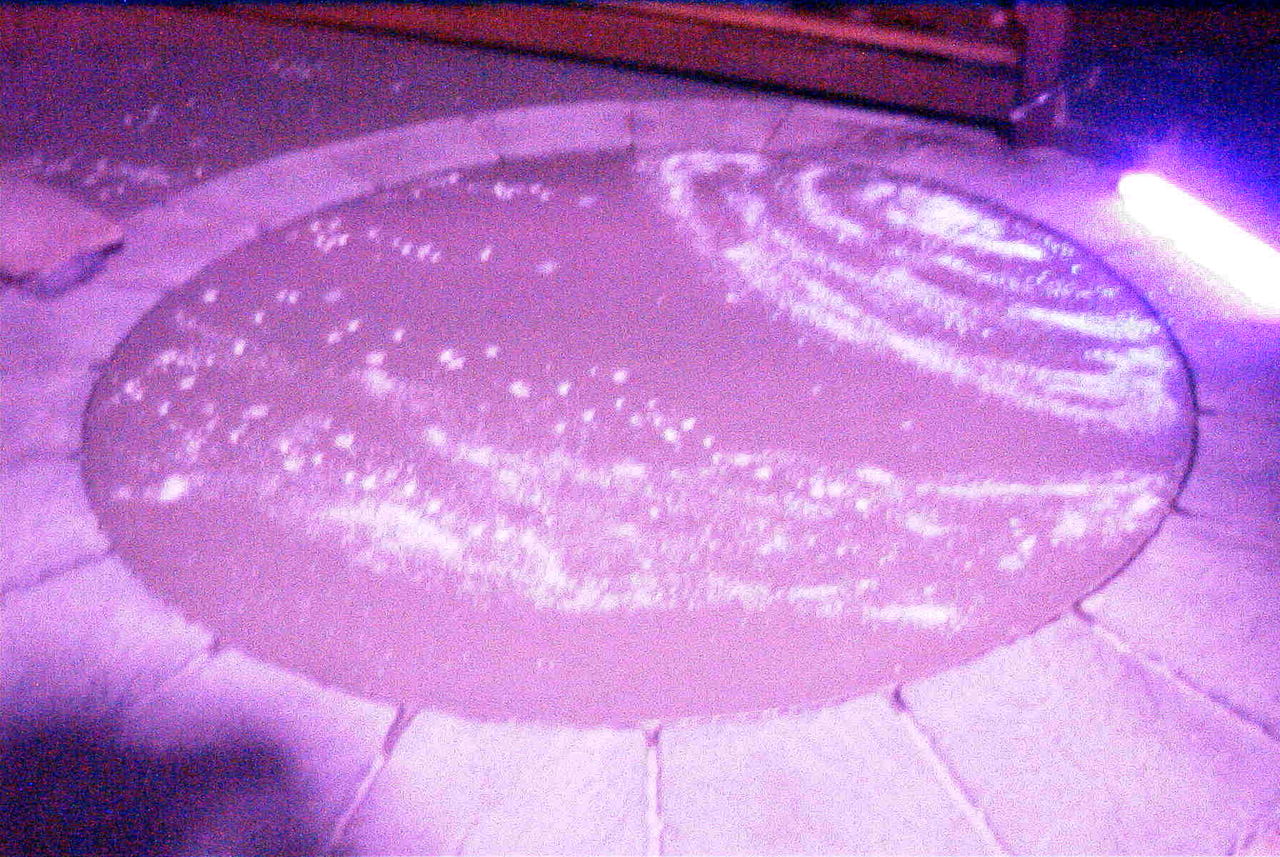 畜光石を蒔き固める作業。夜に光る石なのでやっぱり暗くなってからやらないと出来具合がわかりません。