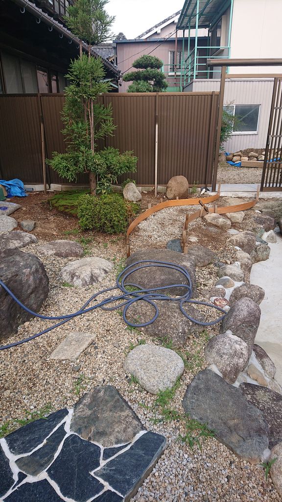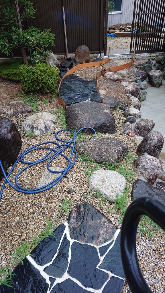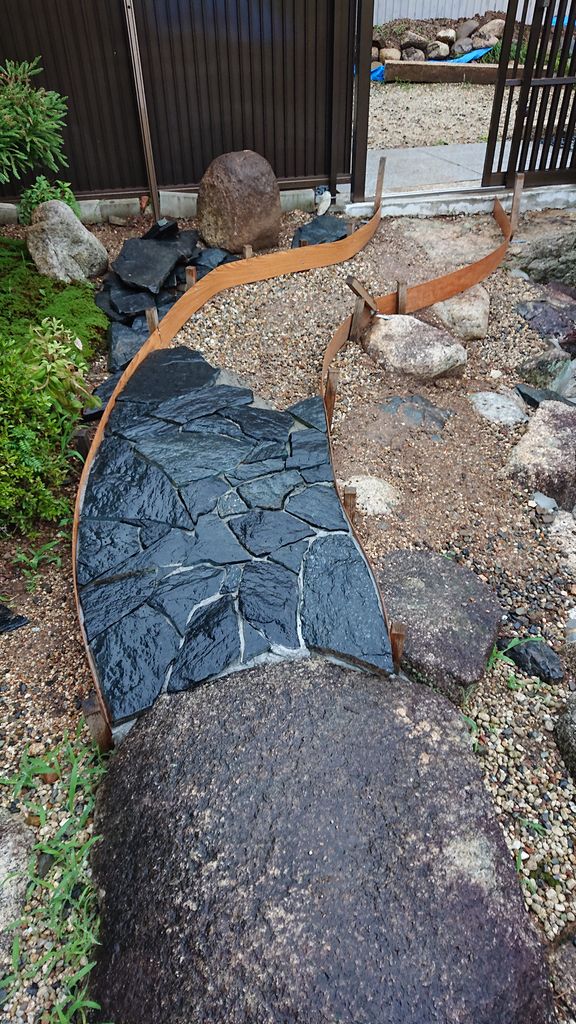 20196月29 乱形石張り作業中 年間管理大安町K様邸 引き続きK様邸作業報告です。 連日雨が続く中 K様邸がうちから近いのもあり雨が止んだら夕方4時から3時間だけでも作業しています。 中々進みませんが、朝から行くより3時間では数枚しか石を張れないので逆に焦らず作業できます。 雑草対策の為、石張りを施工しない飛び石の周辺をコンクリート打設し土留めの為石垣の低い所を上げて今月中には合間を縫ってここの乱形石張り作業を完成させたいと思います。齋藤造園三重県(四日市市、鈴鹿市、亀山市、津市、菰野町、いなべ市、東員町、朝日町、川越町、桑名市)http://saitou-zouen.com