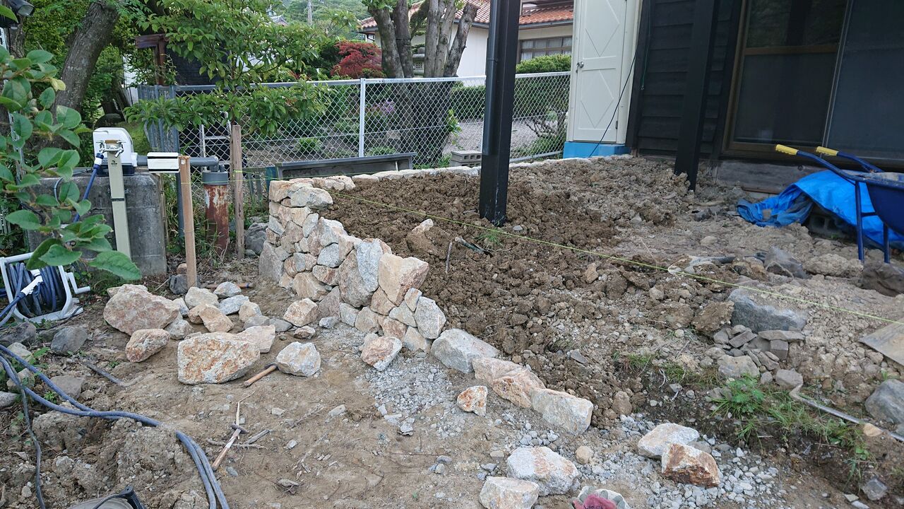 20205月24 甲賀石大型デッキ制作中 菰野営業所 菰野営業所にて続いて合間を縫って取り掛かっているのが、大型デッキを甲賀石で石積して造っていきます。 最初は、ウッドデッキ(樹脂)➡タイルデッキ(グレー系)➡タイルデッキ(赤茶系)➡甲賀石積みデッキで決まりです。色んな課題を考慮してこちらにたどり着きました。齋藤造園三重県(四日市市、鈴鹿市、亀山市、津市、菰野町、いなべ市、東員町、朝日町、川越町、桑名市)http://saitou-zouen.com