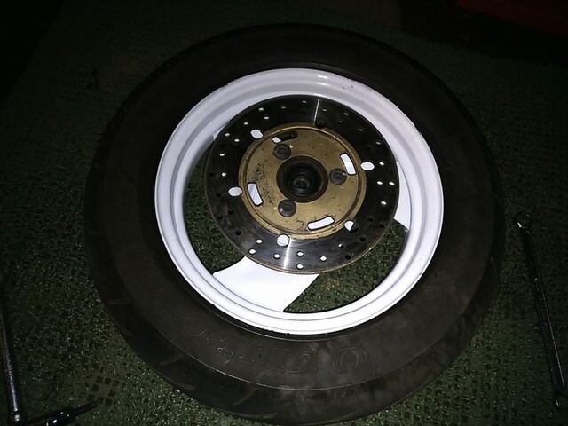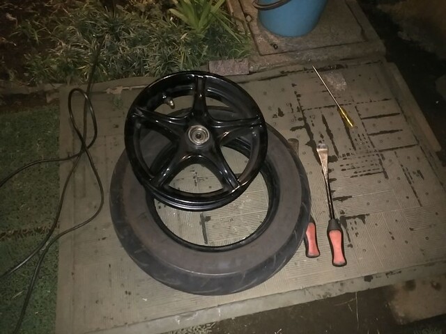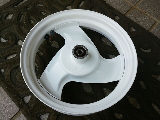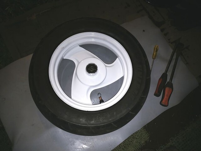 先日塗装した純正フロントホイールが乾燥しましたので、今回はタイヤをホイールに組み付けます♪