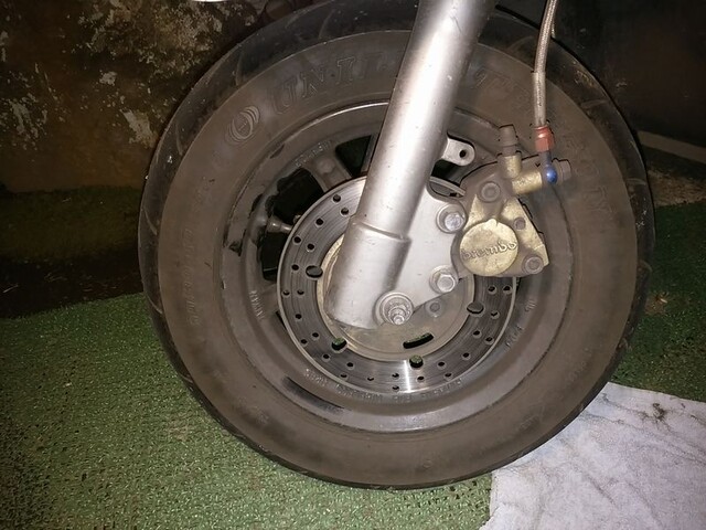 キャリパーにパッドを組み込み、ホイール、キャリパーを車体に取り付け完成♪
