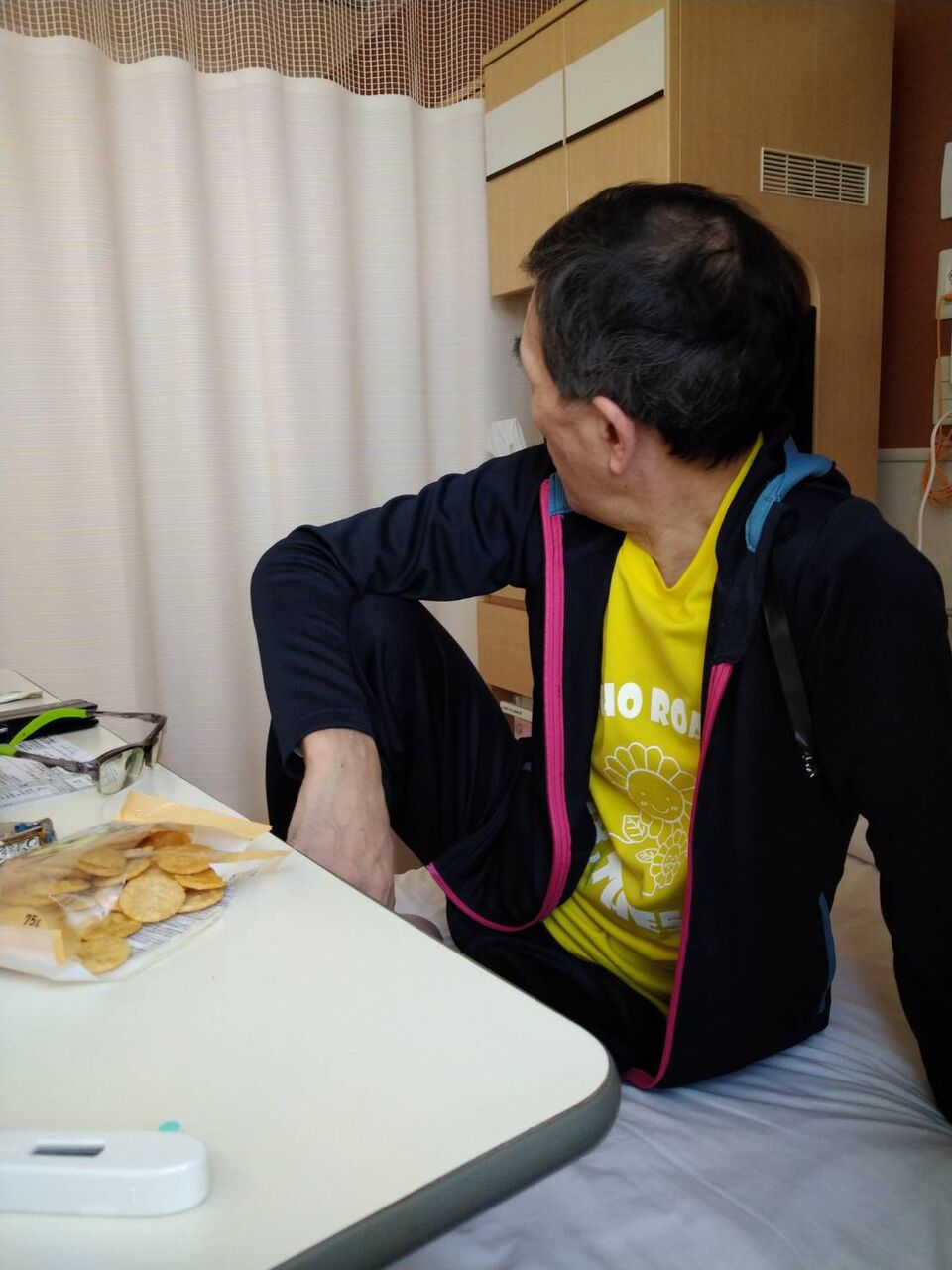 今日一日は、飲食出来ずベッドの上ですが、明日の朝からは飲み物、昼からは食べ物が採れます。