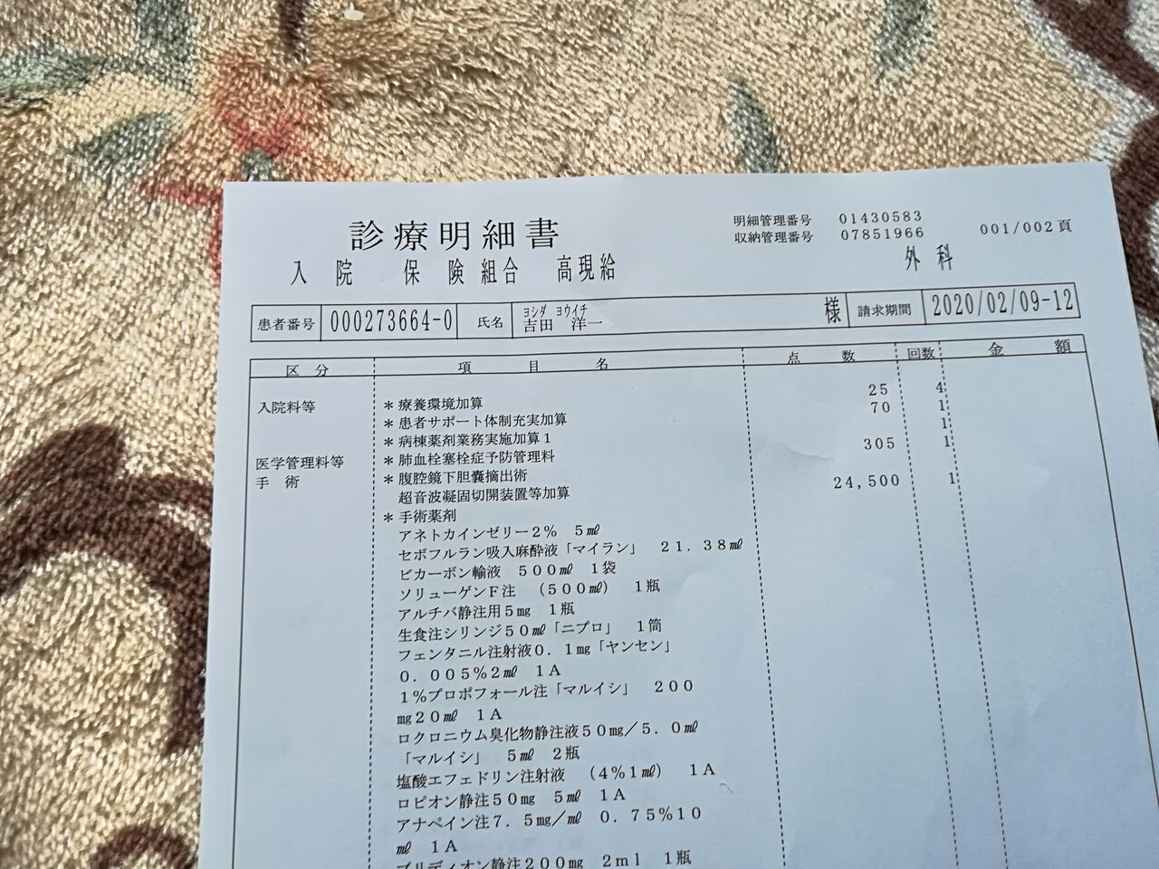 9日入院、10日手術、12日退院という、3泊4日という最短で退院することができました。