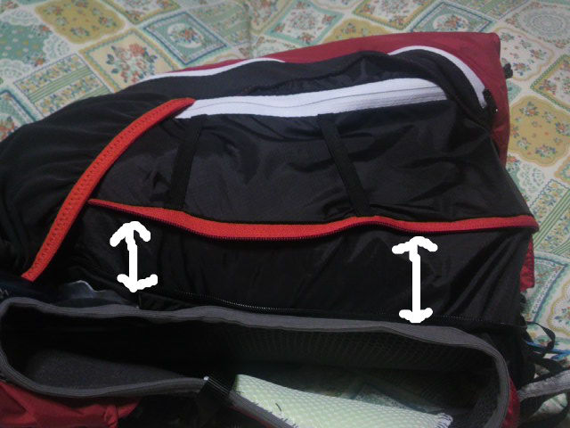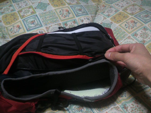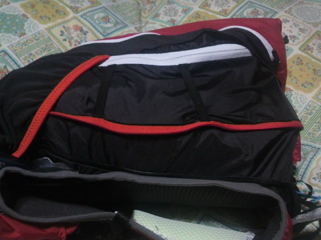 ファスナーがザックの本当に底の部分にあるのに気づかなかった