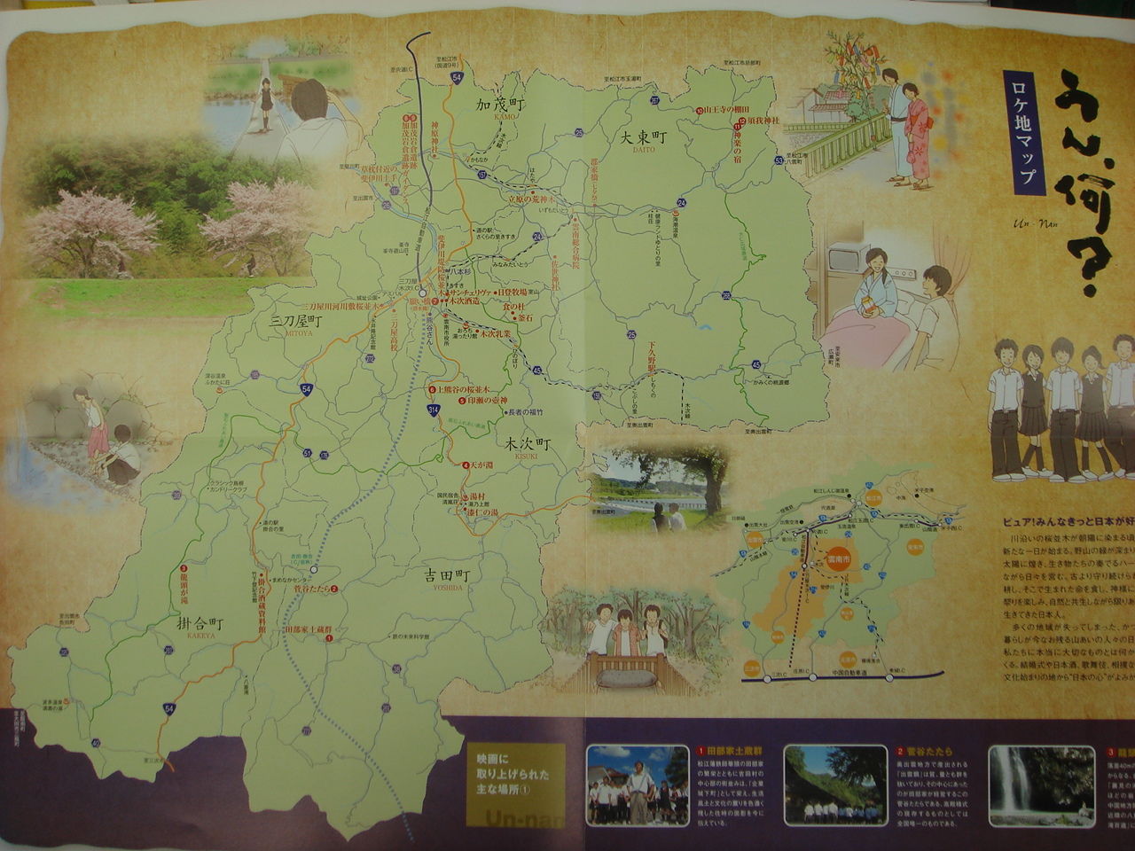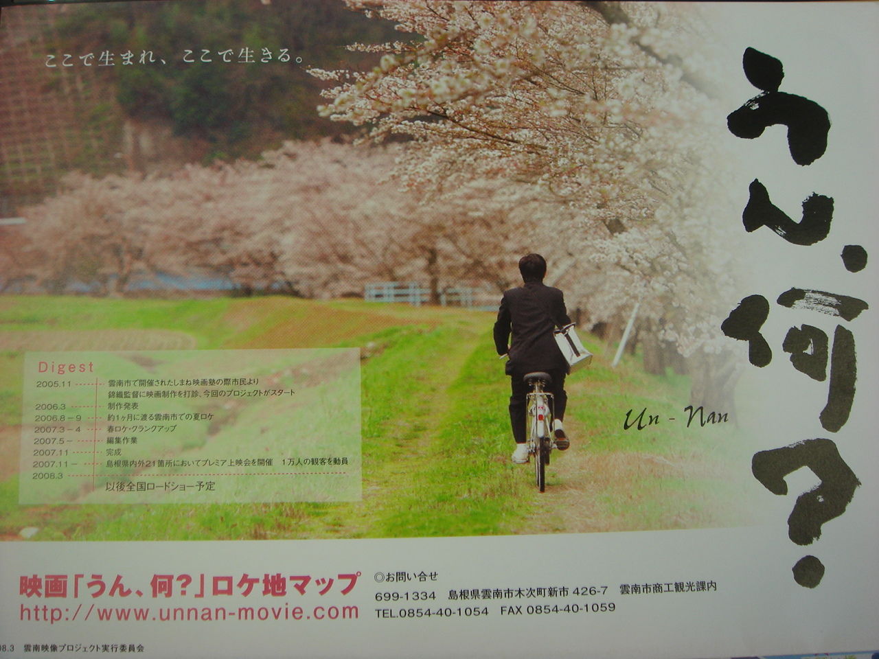 映画「うん、何?」ロケ地は全て雲南市内です。ロケ地マップを所望される方は、雲南市観光協会(雲南市商工観光課内)電話0854-40-1054まで連絡していただければ、郵送いたします!