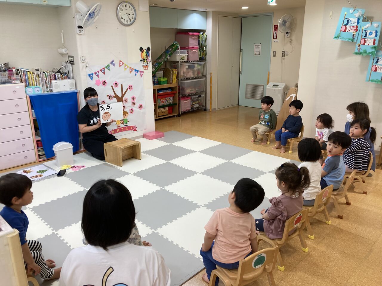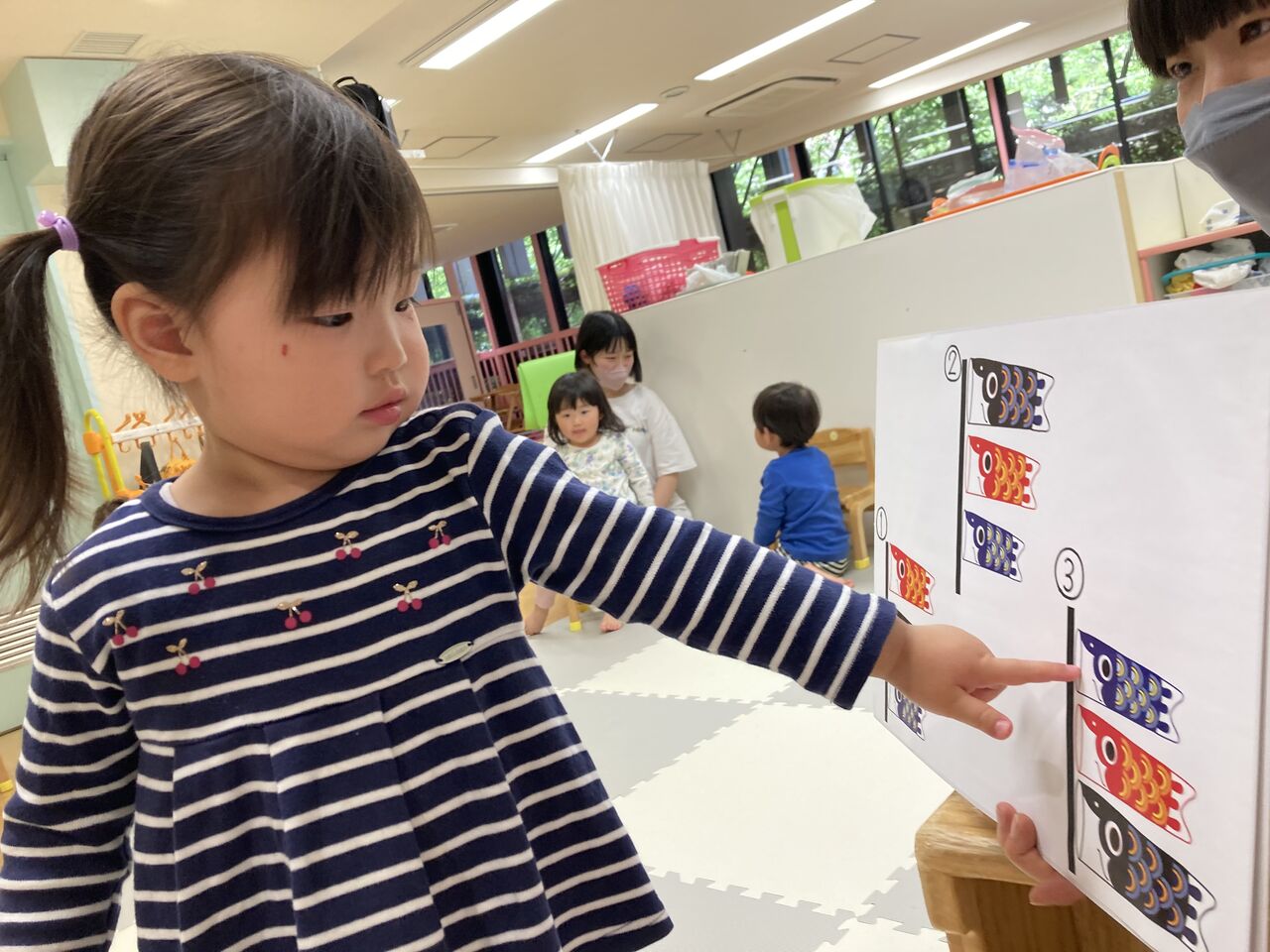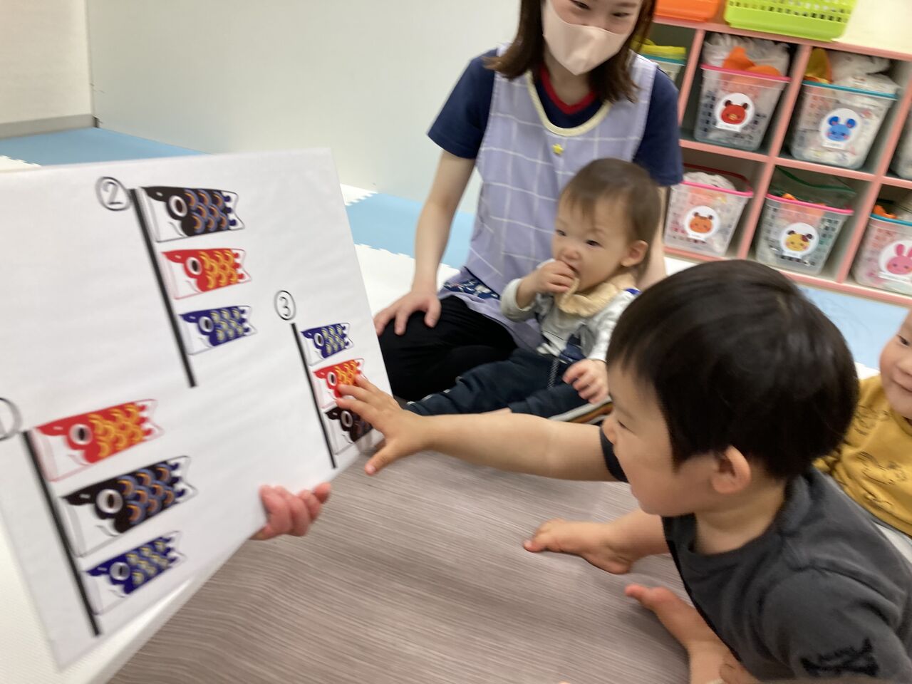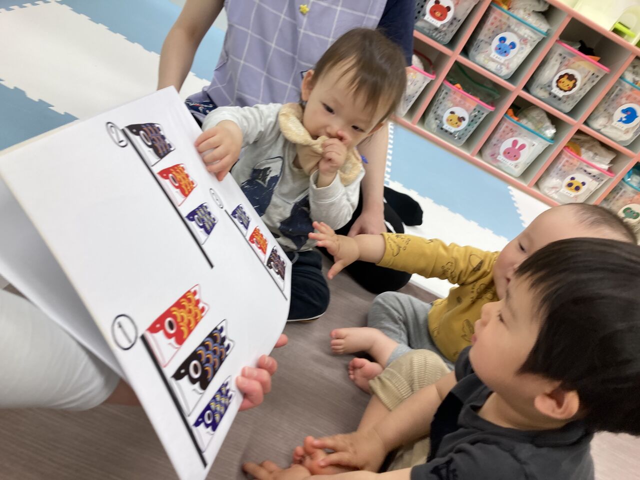 1歳児とは違うところは、子どもに質問を投げかけ子どもに答えてもらう場面があったり『こいのぼり』の歌を振りをつけて歌っていたところでしょうか。