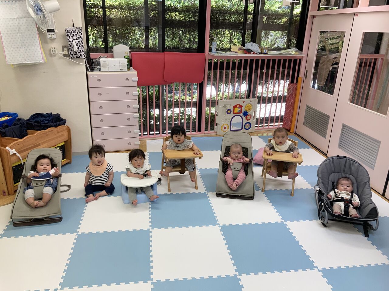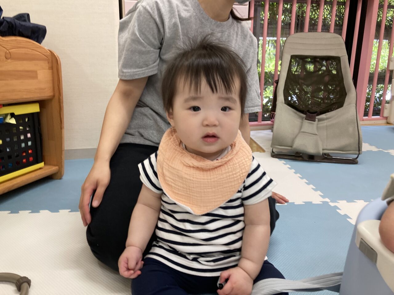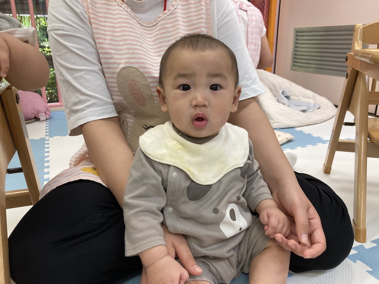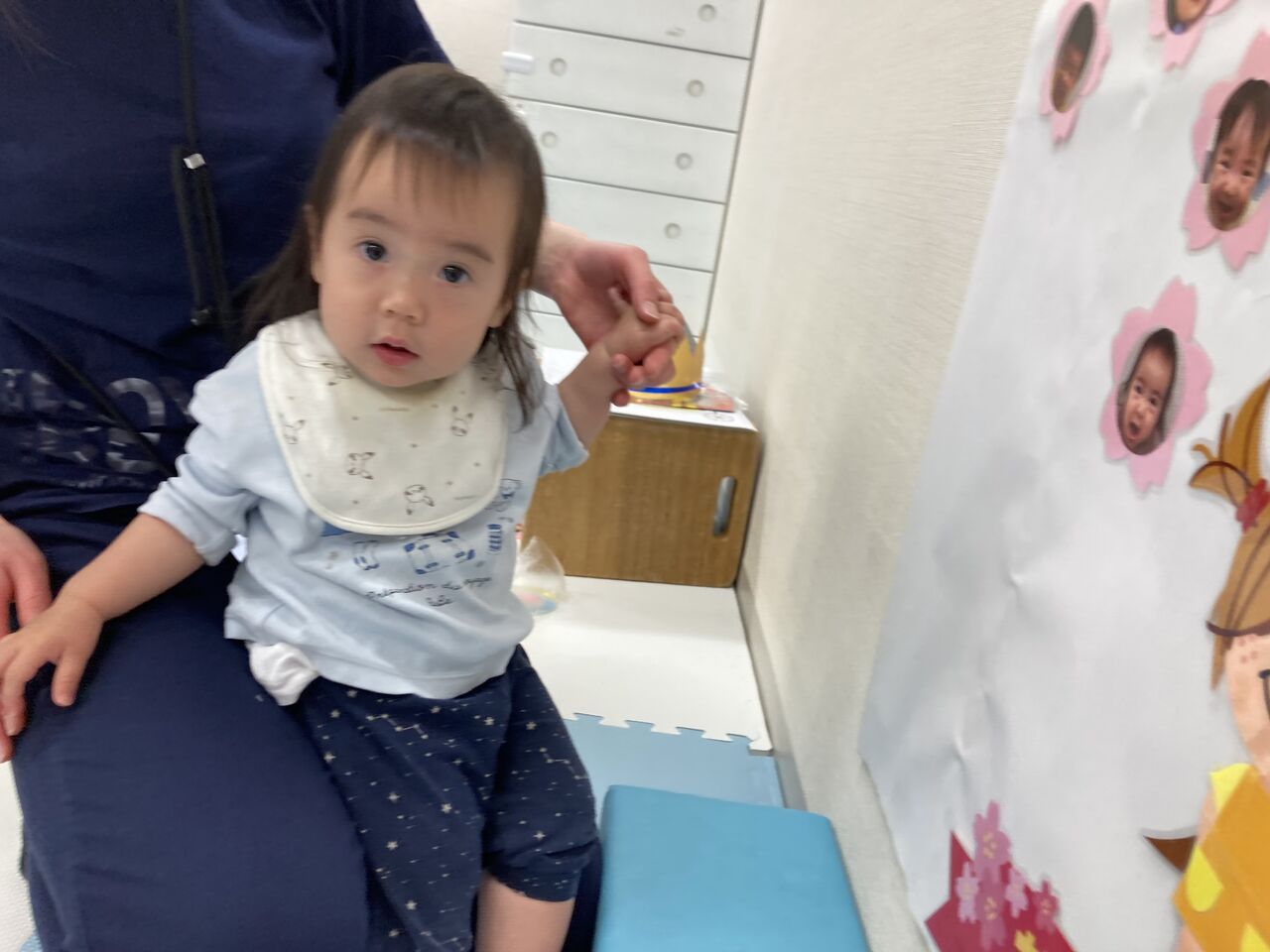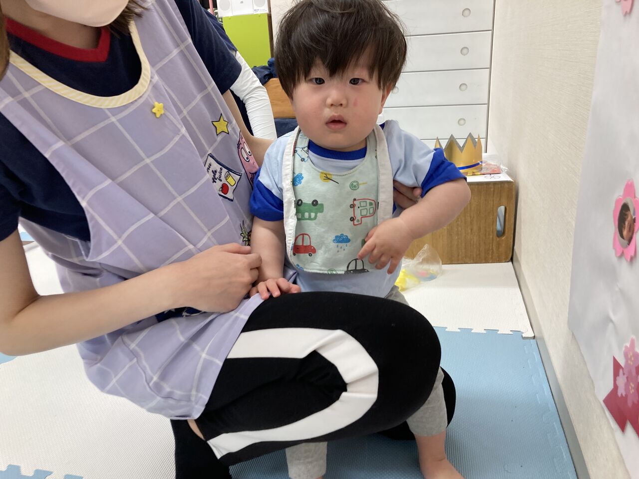 お友達と一緒の活動を楽しんだり保育士に抱っこされたりしながら、落ち着いて過ごしています。