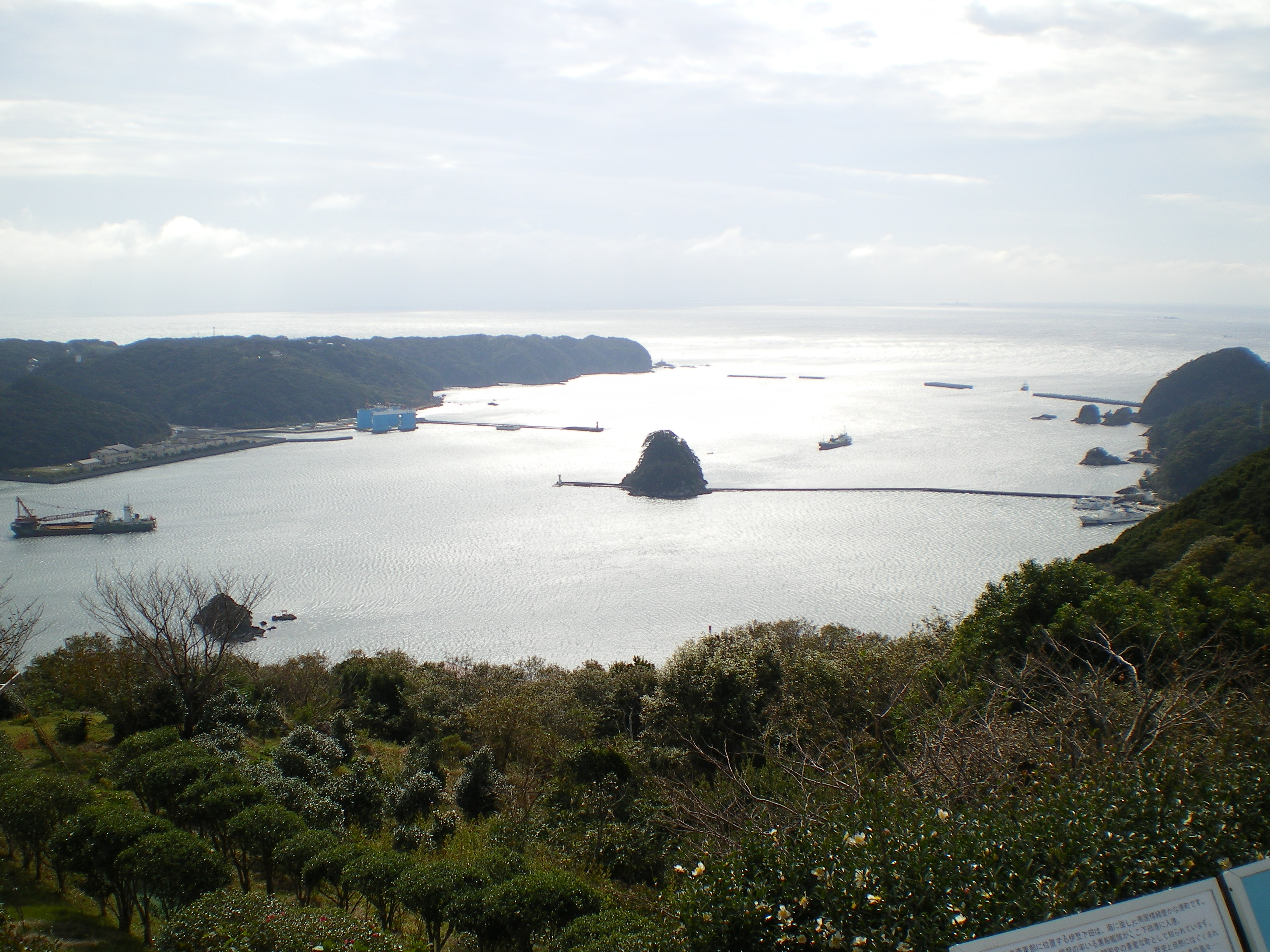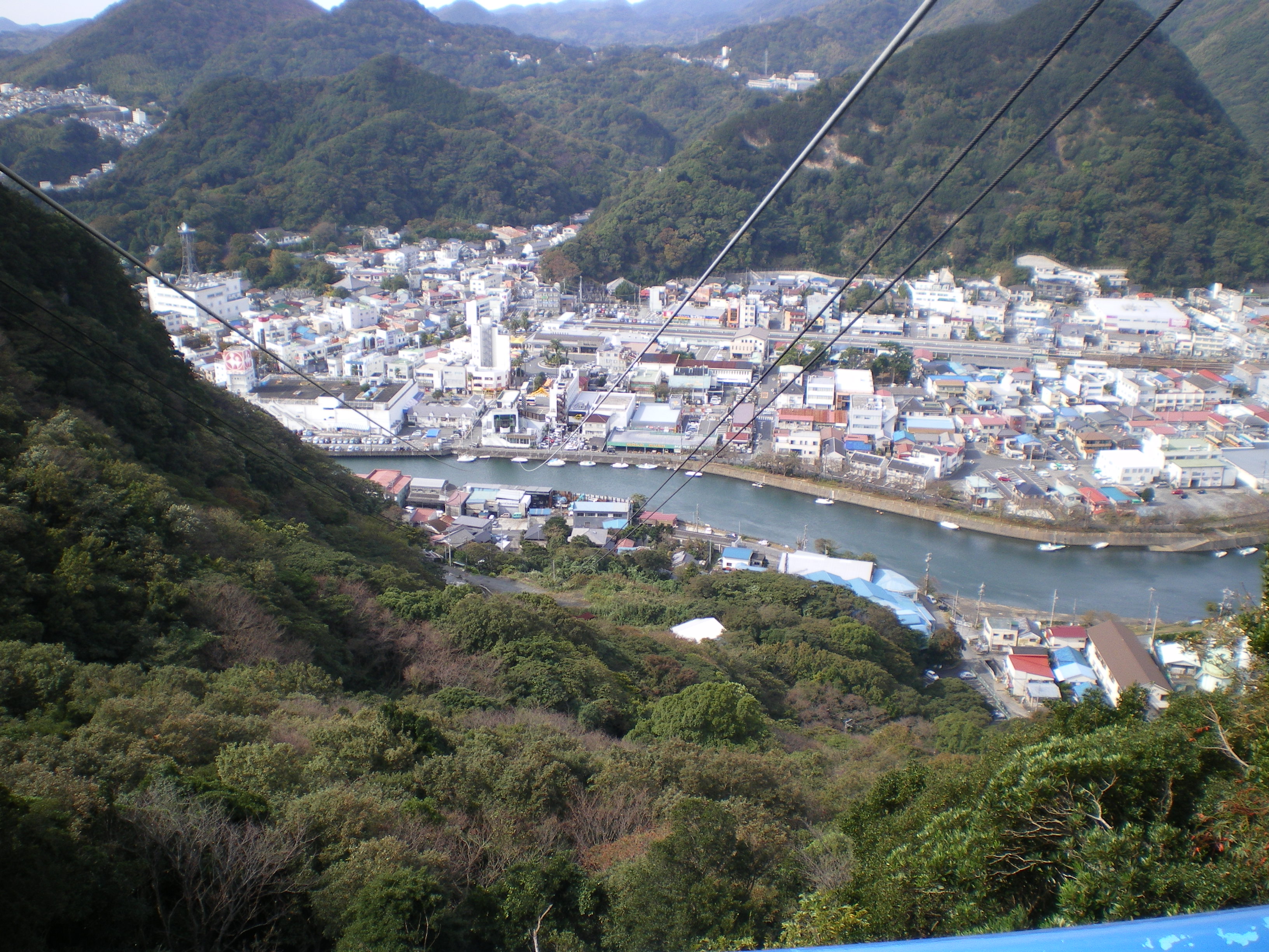 ロープウェイの上って来た下田市方面と、反対海側の景色。