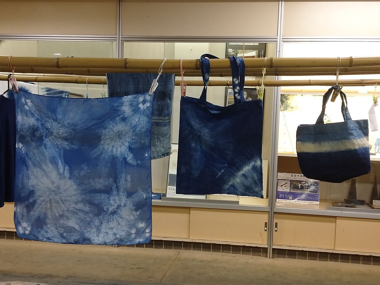 しかし、初体験の藍染、小学生でも出来るようにって簡単なものを教えてくださったんですが、そこに展示してあった素敵作品を見て、これってどうやるんですか?と(笑)