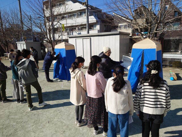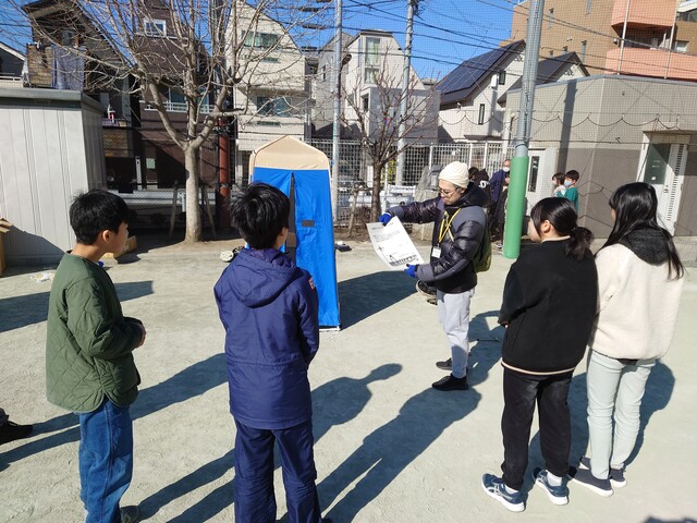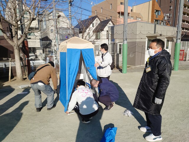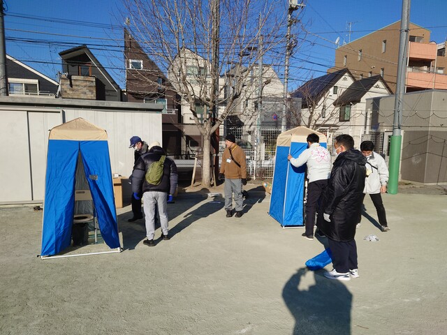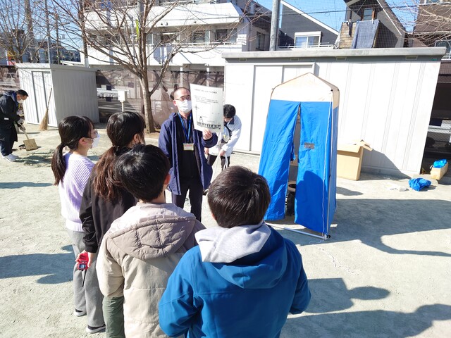 おやじ自身もマンホールトイレの使い方や機能、災害時の取り扱いなど、消防や世田谷区防災担当者からレクチャーを受け、認識を深めていきます。