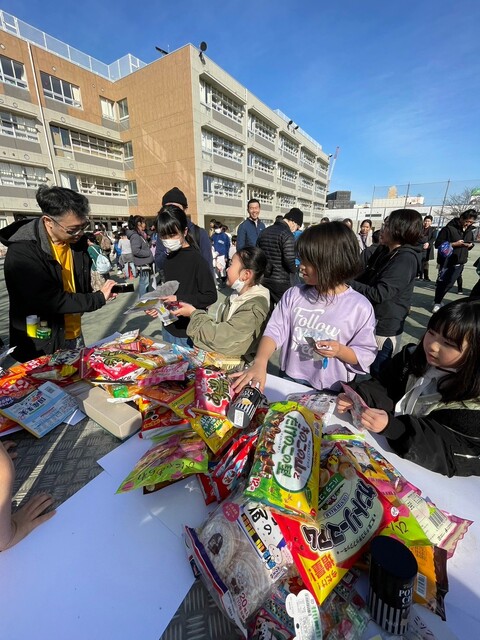 それぞれポイントが高いグループから、景品であるお菓子をゲットすることが出き、笑顔いっぱいの児童たちの顔が印象的でありました。