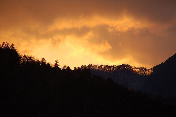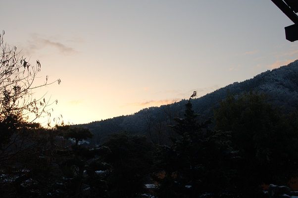 大晦日の朝は、寒さと静けさの中、東の空が明るくなって行く。