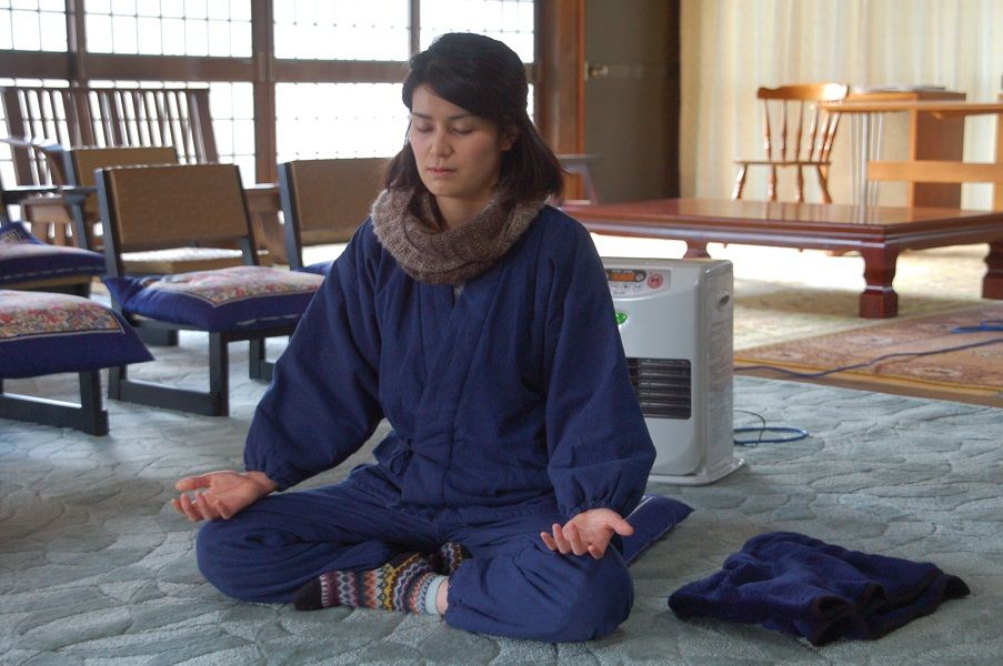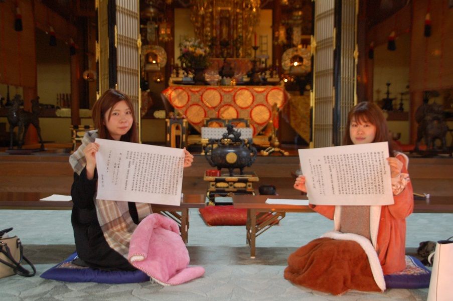 仏教のお話しや瞑想を体験され、次の日は写経です。