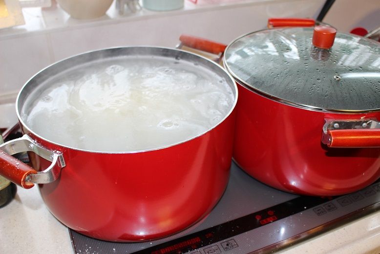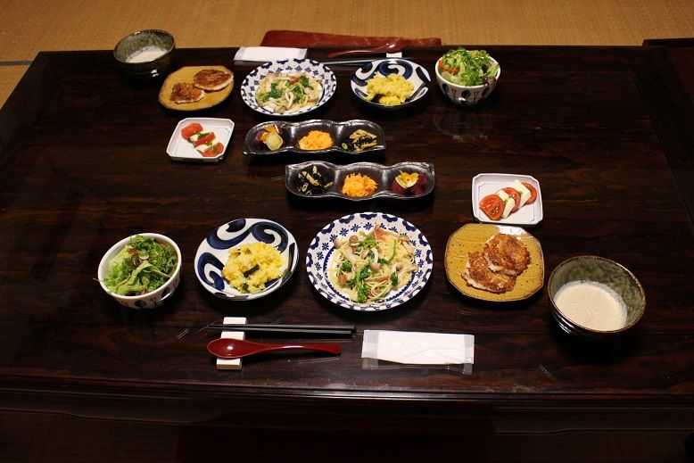 手打ちうどんとおにぎり、そして卵焼きを準備します。
