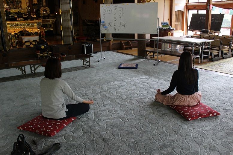 心の授業と瞑想、イタリアン精進料理のお昼をはさんで体験していただく。