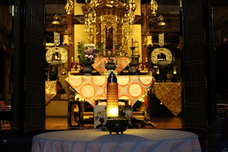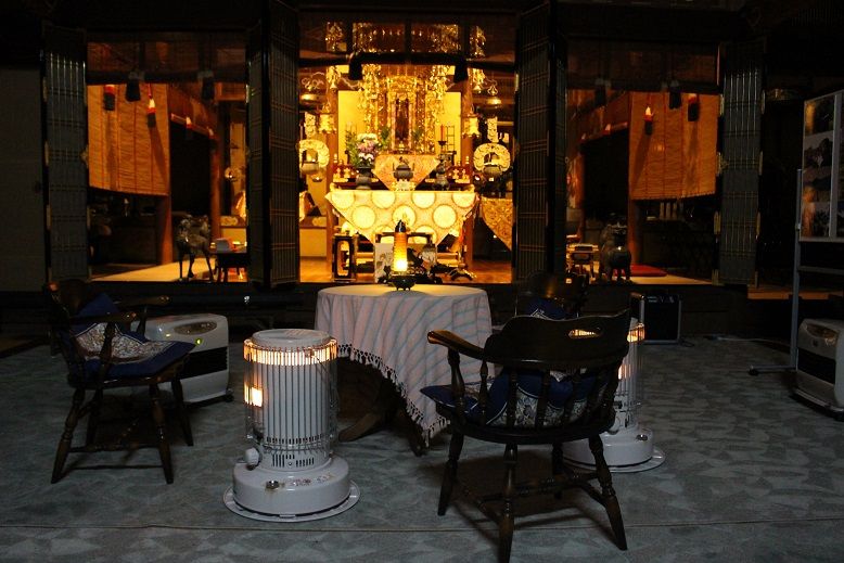 明かりを出来るだけ点けずに、ストーブと内陣の明かりでお香を焚いた。