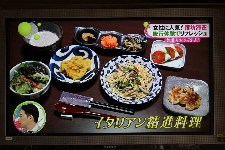 かなり長い時間の特集で、宿坊紹介から体験風景、さらにはイタリアン