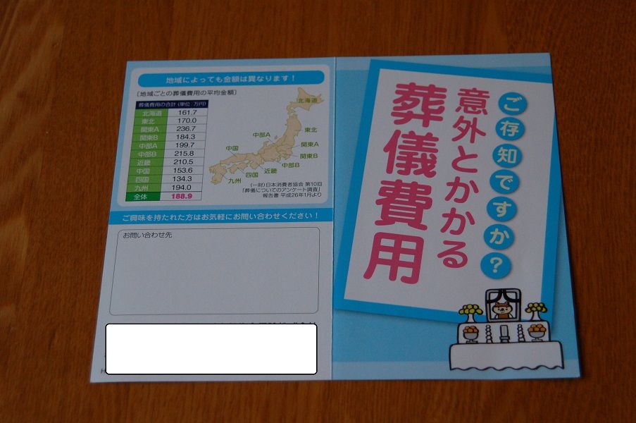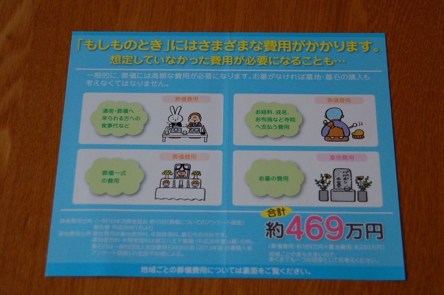 このパンフレットは、保険会社のパンフレットなので、自分の葬儀費用を保険