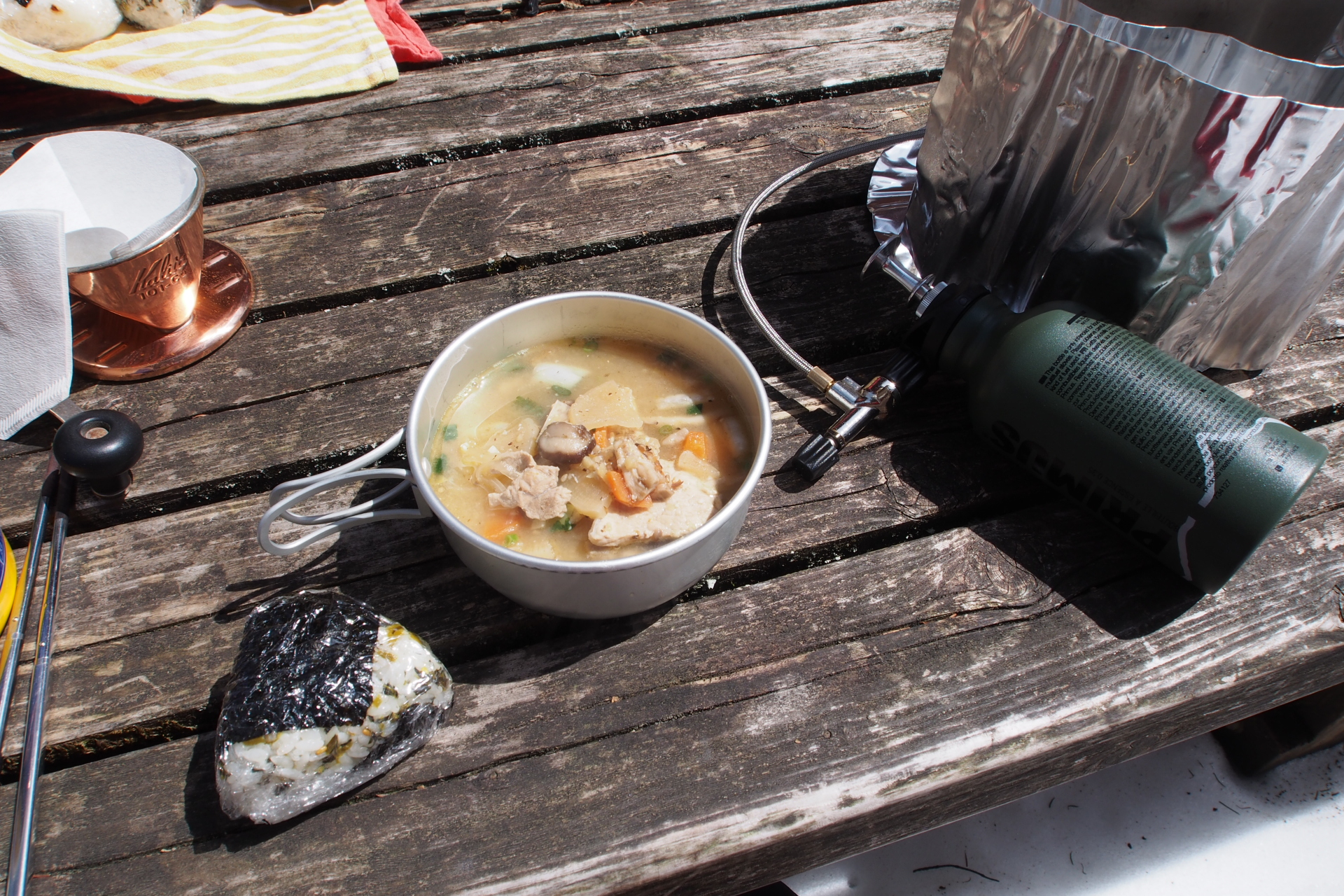 夫妻がおにぎりと豚汁を作ってきてくれました。