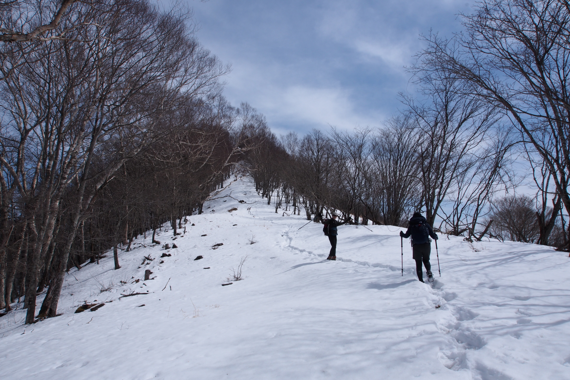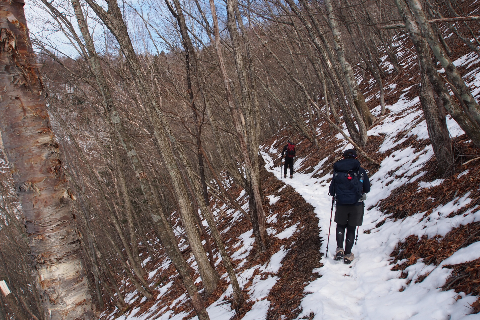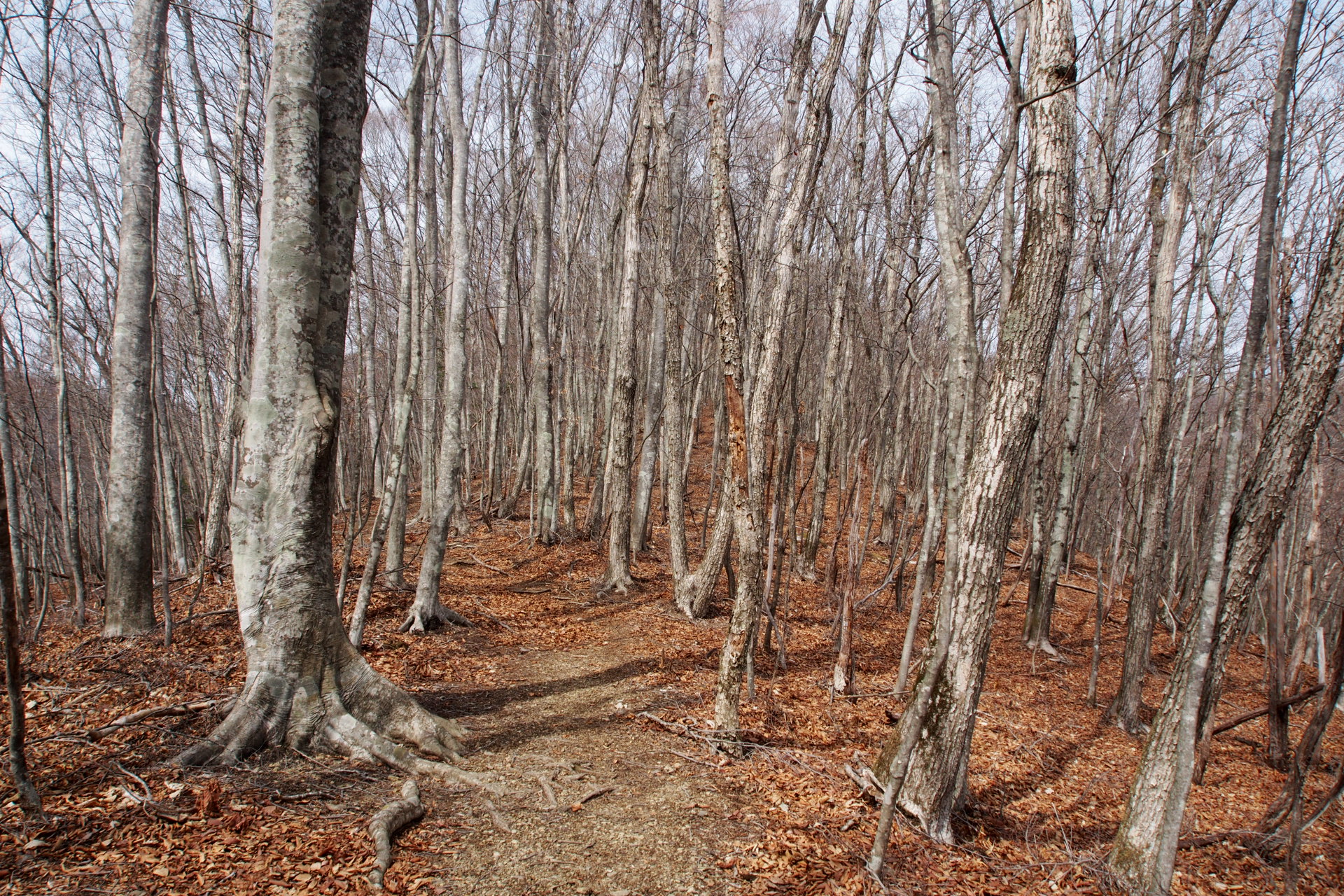 落葉したブナやクヌギが多くなると、南の谷間から吹く涼しい風が心地いい。