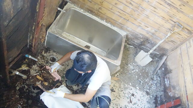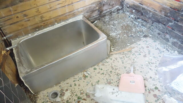 お話し合いのうえ、お風呂をユニットバスへ交換。脱衣場と廊下の床は修繕することになりました。