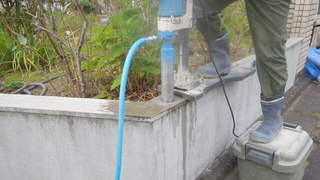 コア抜きの機械で水を掛けながらゆっくりと開けていきます。
