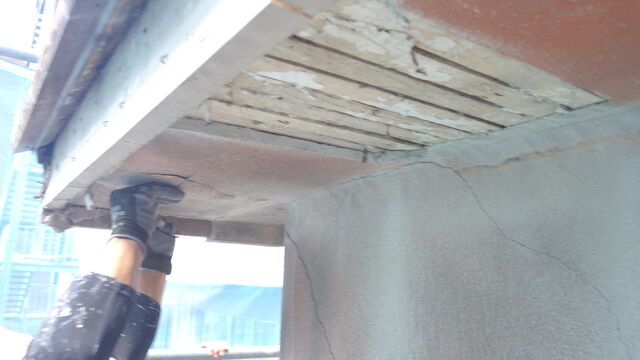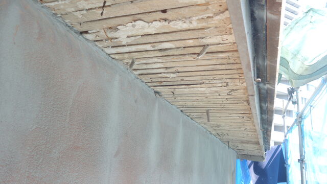 屋根を剥がし、軒先のモルタルを切断して剥がしていきます。
