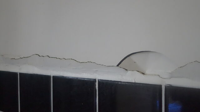 壁やシーリング部分に亀裂などが入っていて、そこから水が入っている状態です。