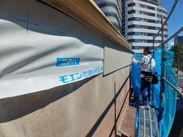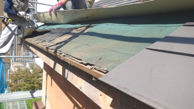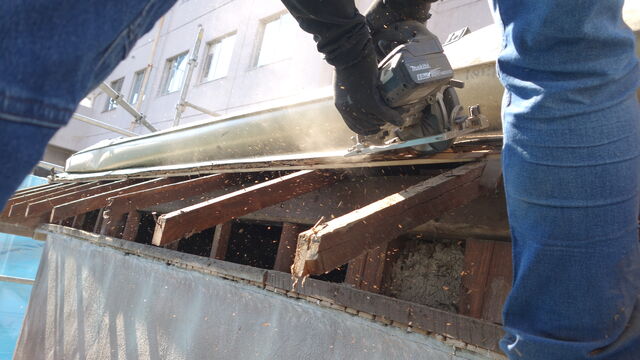 モルタルが剥がし終わったら屋根の切り詰めです。